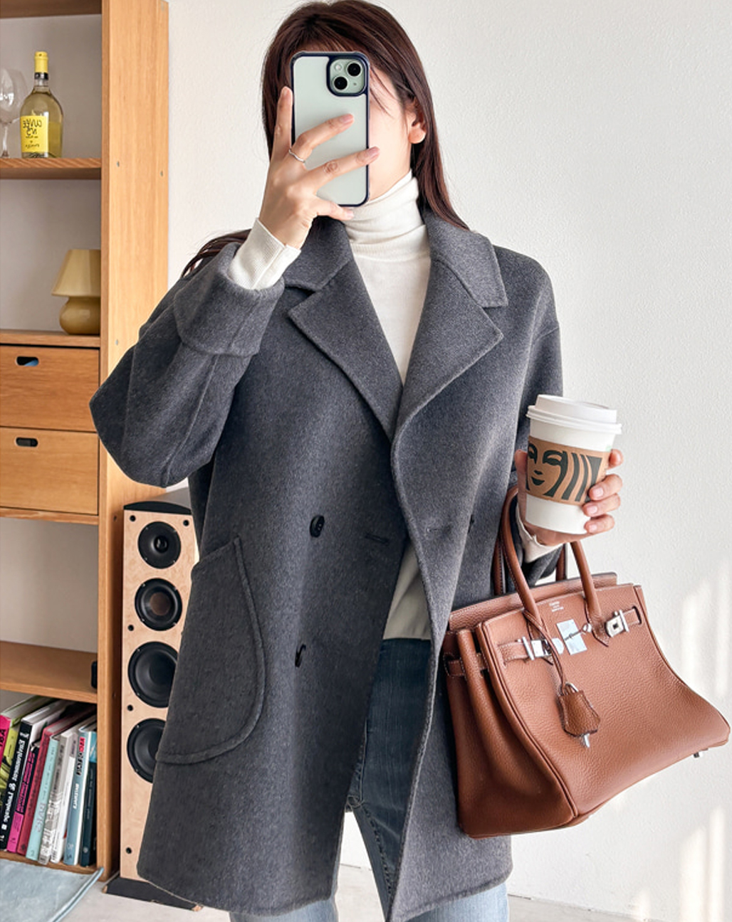 울100 하프코트 여자 싱글 겨울 핸드메이드 반코트