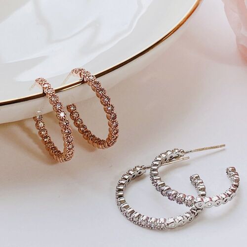 슬림 인앤아웃 크리스탈 테니스 링 귀걸이