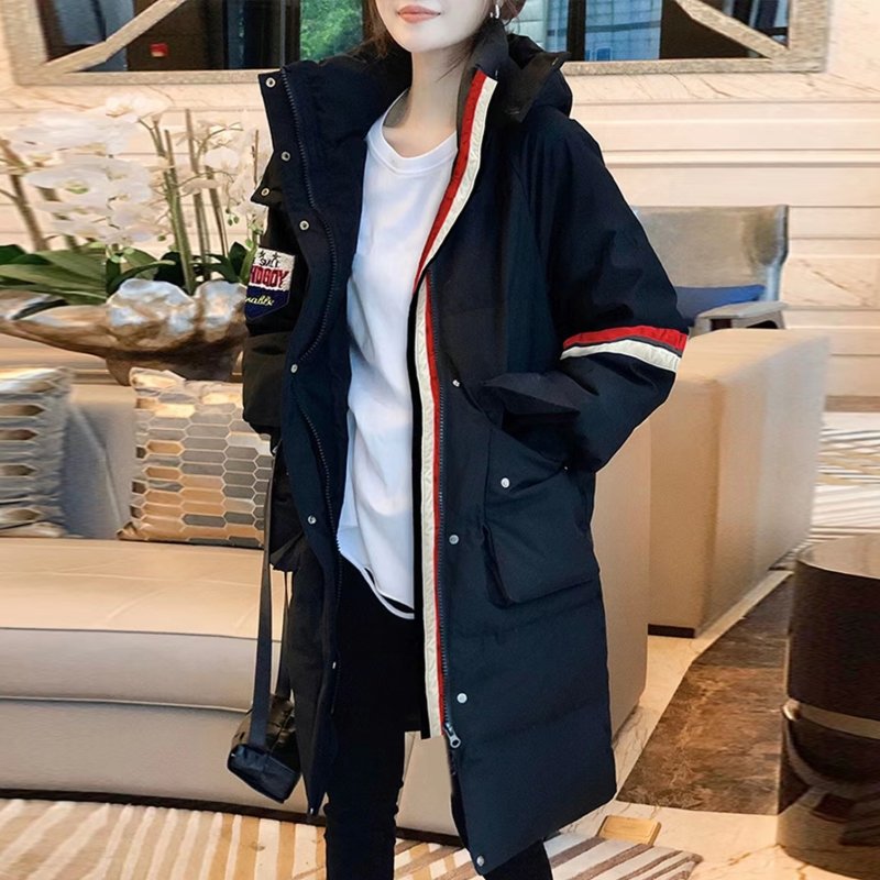 패칭 레터링 캐주얼 롱 패딩 자켓