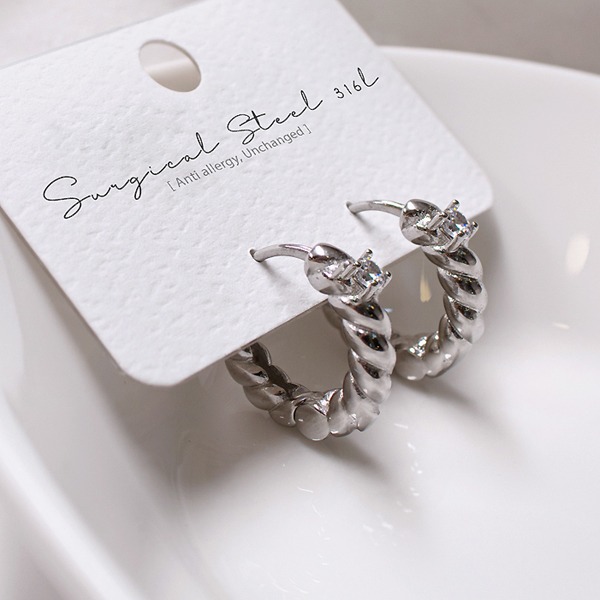 써지컬스틸 모노 꼬임 큐빅링 귀걸이