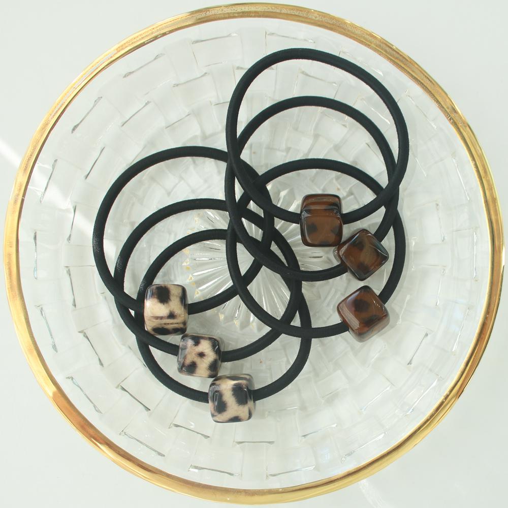 호피 큐브 머리끈 데일리 심플 헤어 머리방울 고무줄