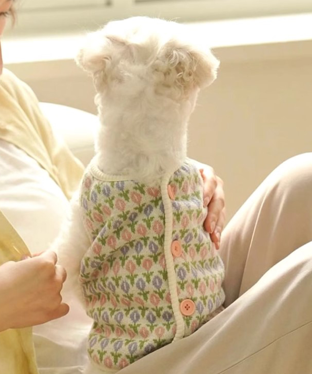 [3+1] [+사은품(삑삑이장난감)/주소지당1개] 강아지 꽃무늬 베스트 / 가을겨울 간절기 니트 조끼 고양이 실내복 외출복 산책룩 등원룩 애견옷 귀여운 아기강아지 수면조끼