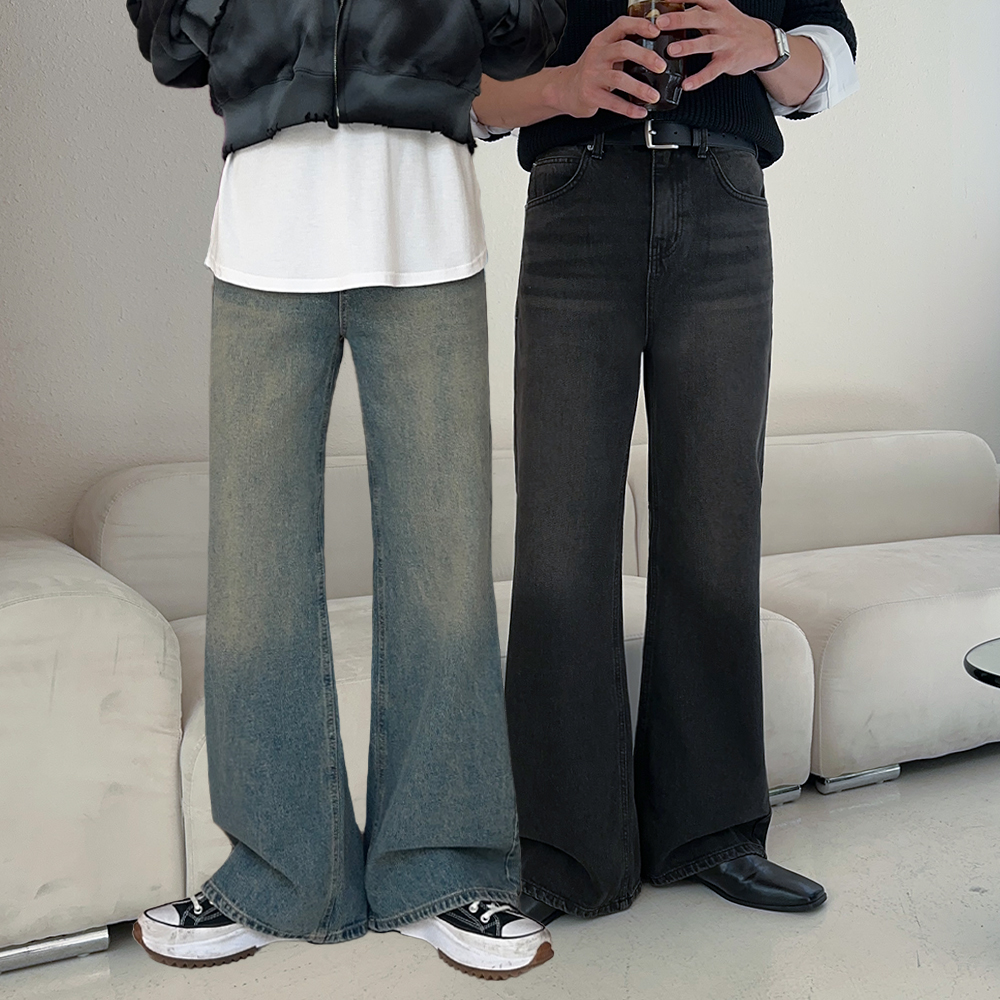 [부츠컷💜고퀄] 프리미엄 세미와이드 부츠컷 청바지 샌드 워싱 데님 바지 흑청 중청 연청 다리길어보이는 블랙진 브러쉬 데님팬츠 커플룩 데이트룩 남친선물 흑청바지 슬림핏 시밀러룩 강