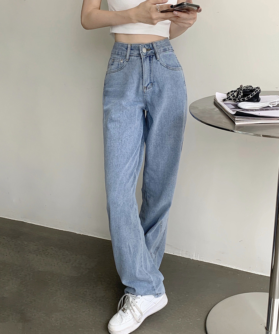 👖[M~XXL]하이웨스트 와이드 팬츠 여자청바지 통넓은 여성데님 키작녀 연청바지 블루메이즈