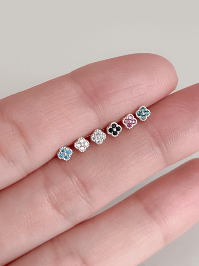 [925silver]초미니 클로버 플라워 큐빅 라블렛 피어싱(6color)