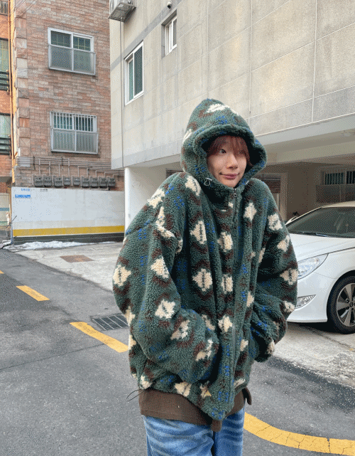 pattern neck fleece zip-up / 후리스 집업 , 후리스 , 후드집업