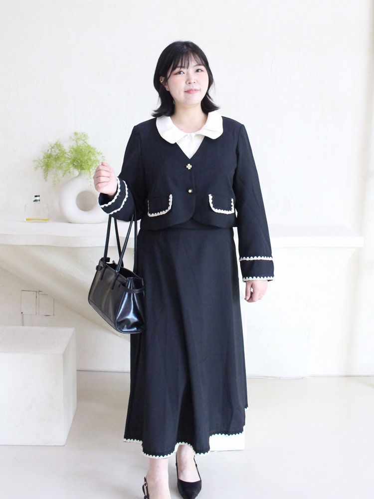 빅사이즈 여성 오피스룩 롱스커트 세트 플러스사이즈 하객룩 정장 99 120 140