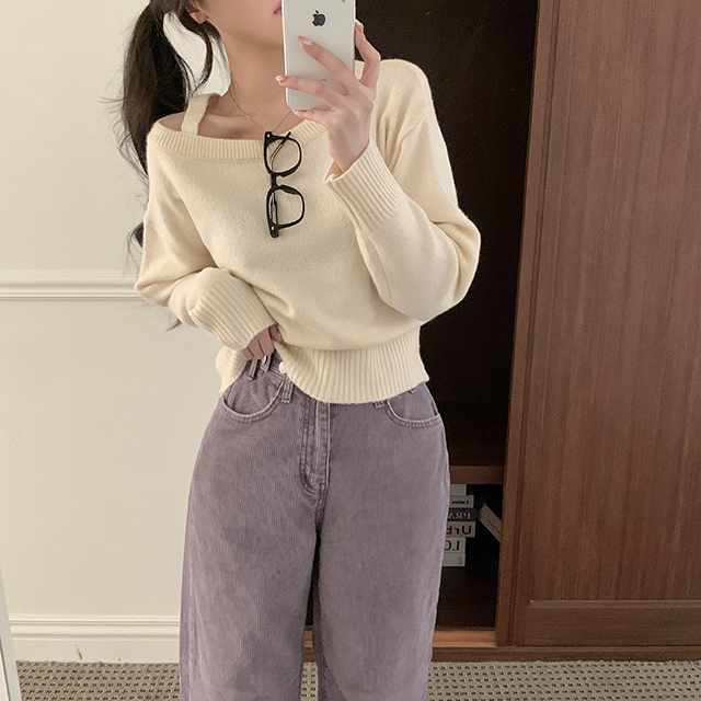 [ 독서실룩 ] 티아 오프숄더 입술넥 크롭 니트