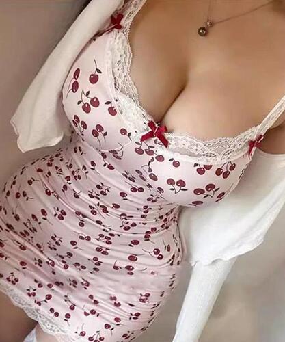 솔브 레이스 리본 러블리 톡톡 체리프린팅 슬림 미니원피스