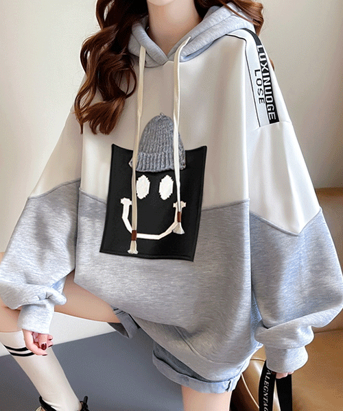 맨투맨맛집 / 비니 스마일 후드 박시 맨투맨