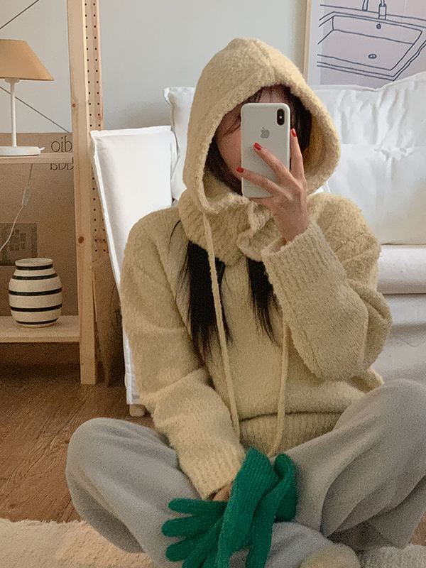 (set)플론 울 바라클라바 세트 겨울 부클 니트 (4color)