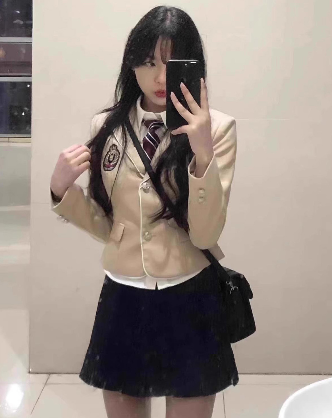 롯데월드 가을신상 졸업식 학생 단체 촬영 교복 자켓/넥타이+셔츠/슬림 미니 스커트 코디세트