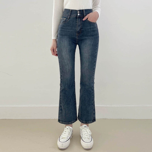 [S-2XL] 투버튼 슬림 롱 부츠컷 데님 팬츠