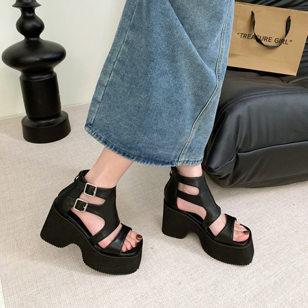 시크덩꼬 더블 벨트 뒷지퍼 가보시 통굽샌들 (9.5cm)