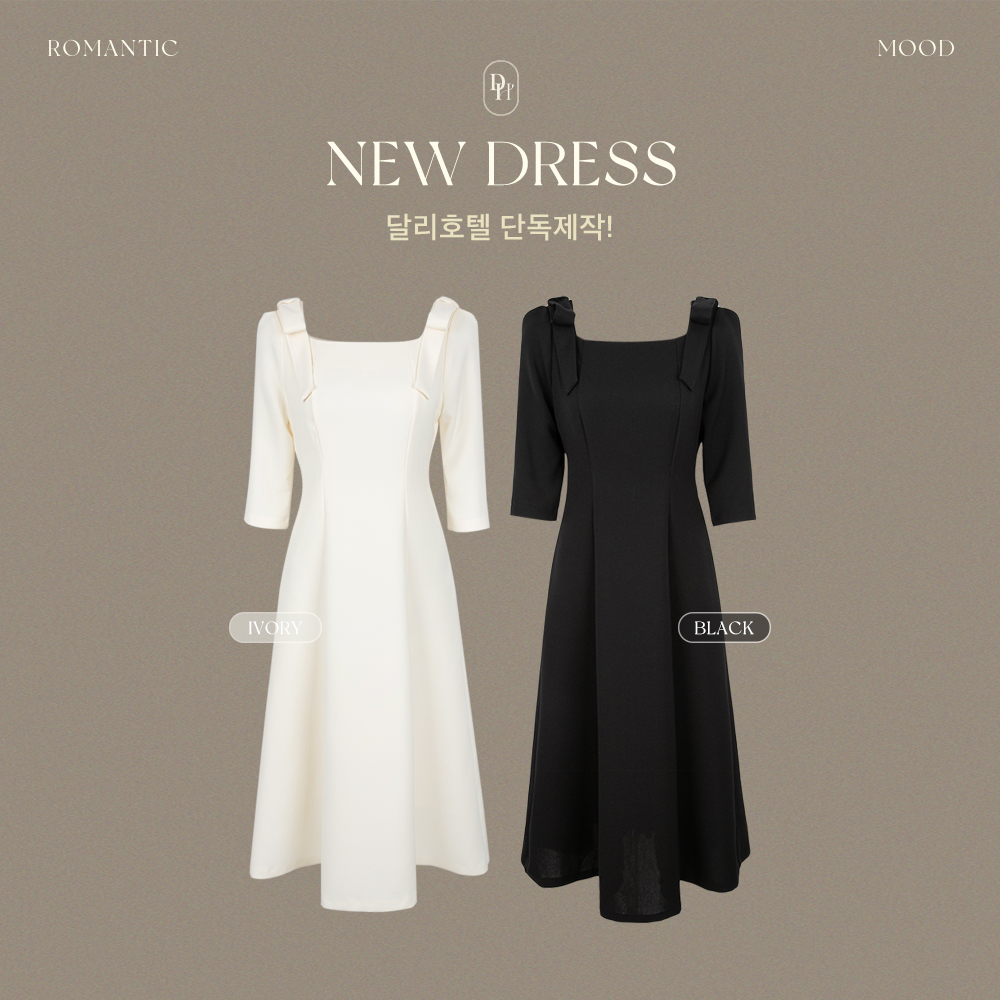 [Dali made]센디 스퀘어넥 리본 머메이드 플레어 원피스(하객룩/셀프웨딩/브라이덜샤워)