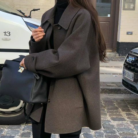 프렌치 앤티크 루즈핏 하프 모직 코트 위슈드코트