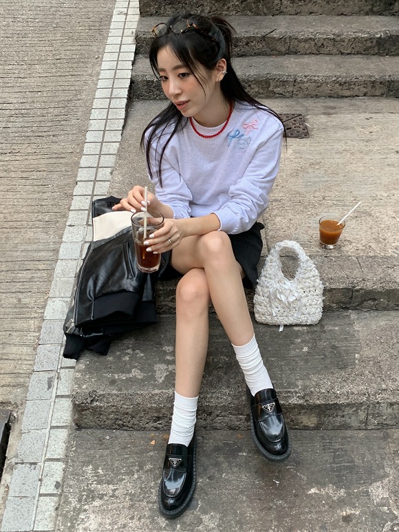 케이치 리본 자수 맨투맨