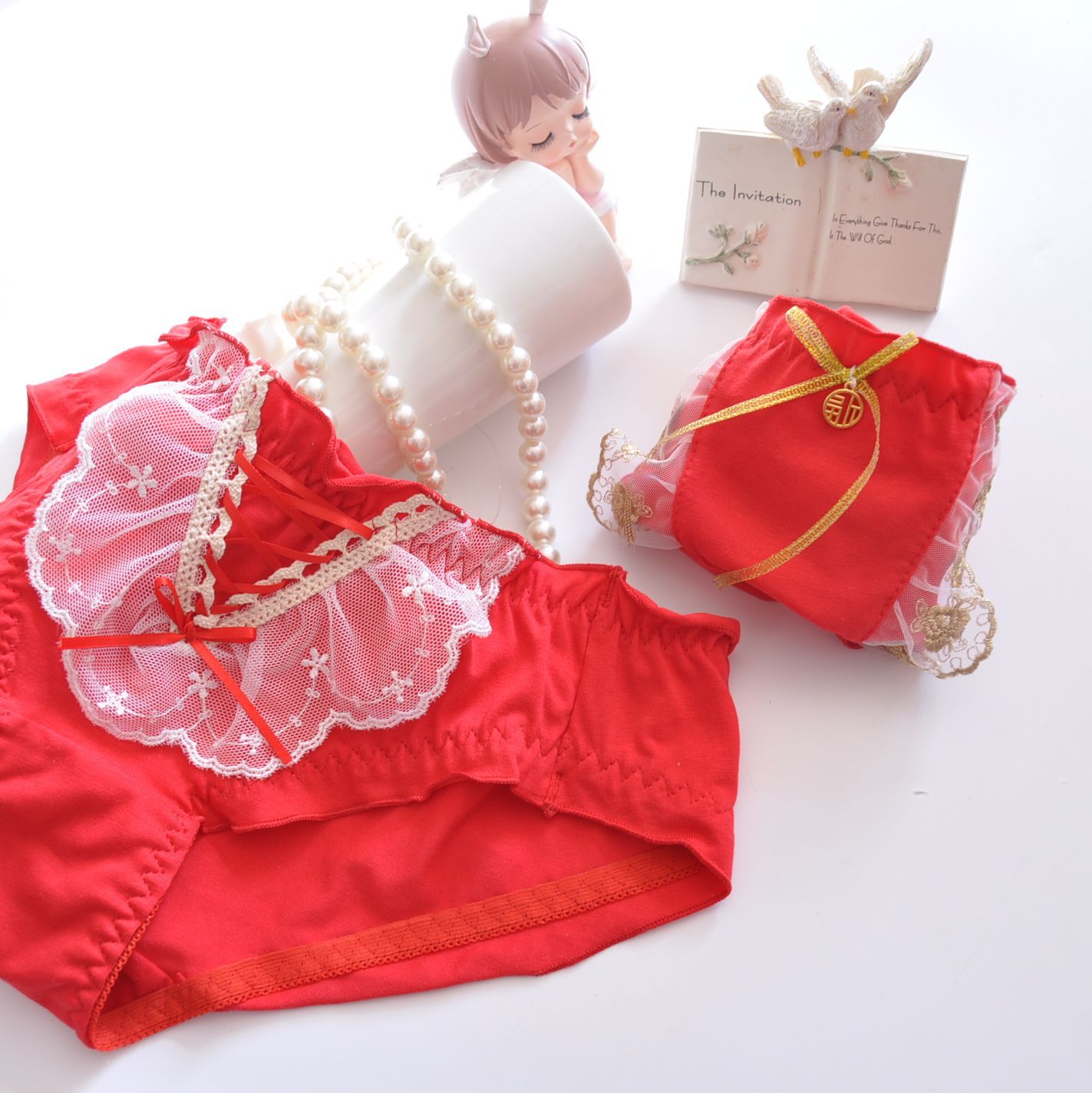 행운의 빨간 여성팬티 풀라워 순면팬티 새해선물 명절 기념 생일 속옷 2매입