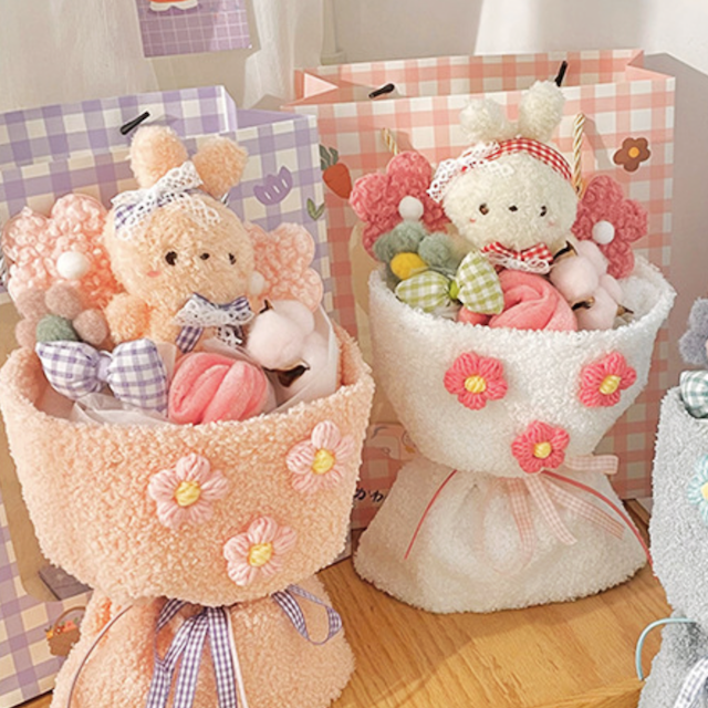 졸업식 토끼 인형 꽃다발 유치원 어린이집 재롱잔치 졸업 꽃 선물 핑크 화이트