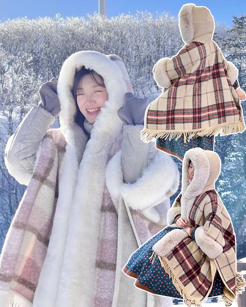 재입고요청1위✨주문폭주✨ 2025 BEST 컬러 PINK ! 핑크 ! 오래 기다려주셨어요!! 온-오프라인 1등 (프리미엄🎀퀄리티) 두툼한 담요느낌 ! 단독으로도 한겨울까지 패딩위에 입기에도 좋은 "한겨울 삿포로 망토퍼"