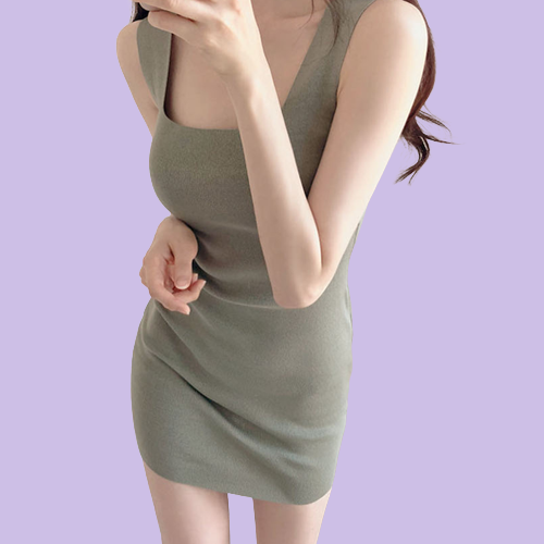 여름 민소매 미니 원피스 슬림 스퀘어넥 쿨링 바닷가 휴양지