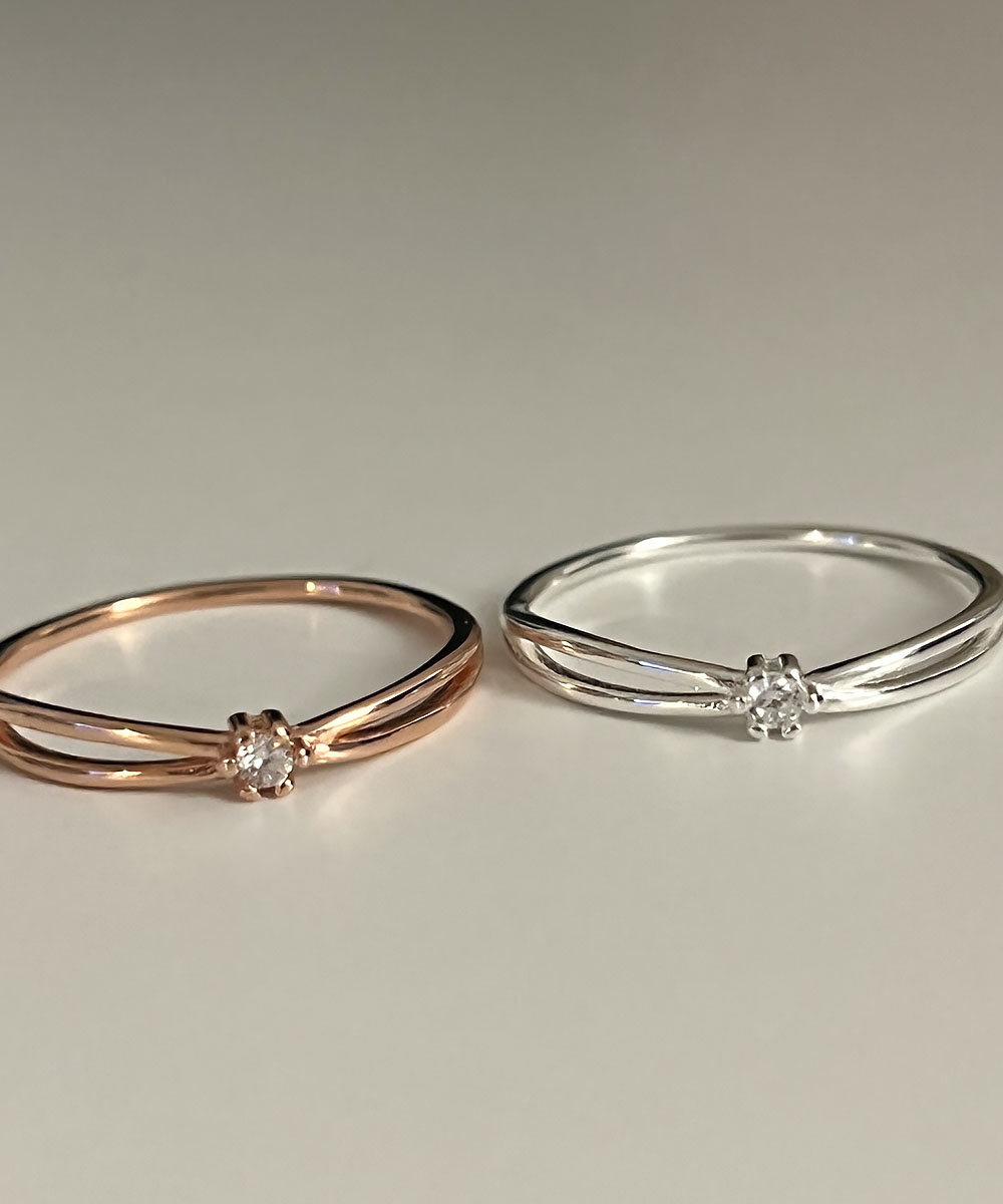 [무배] 실버925 센터 큐빅 두줄 크로스 반지 (실버 로즈골드)