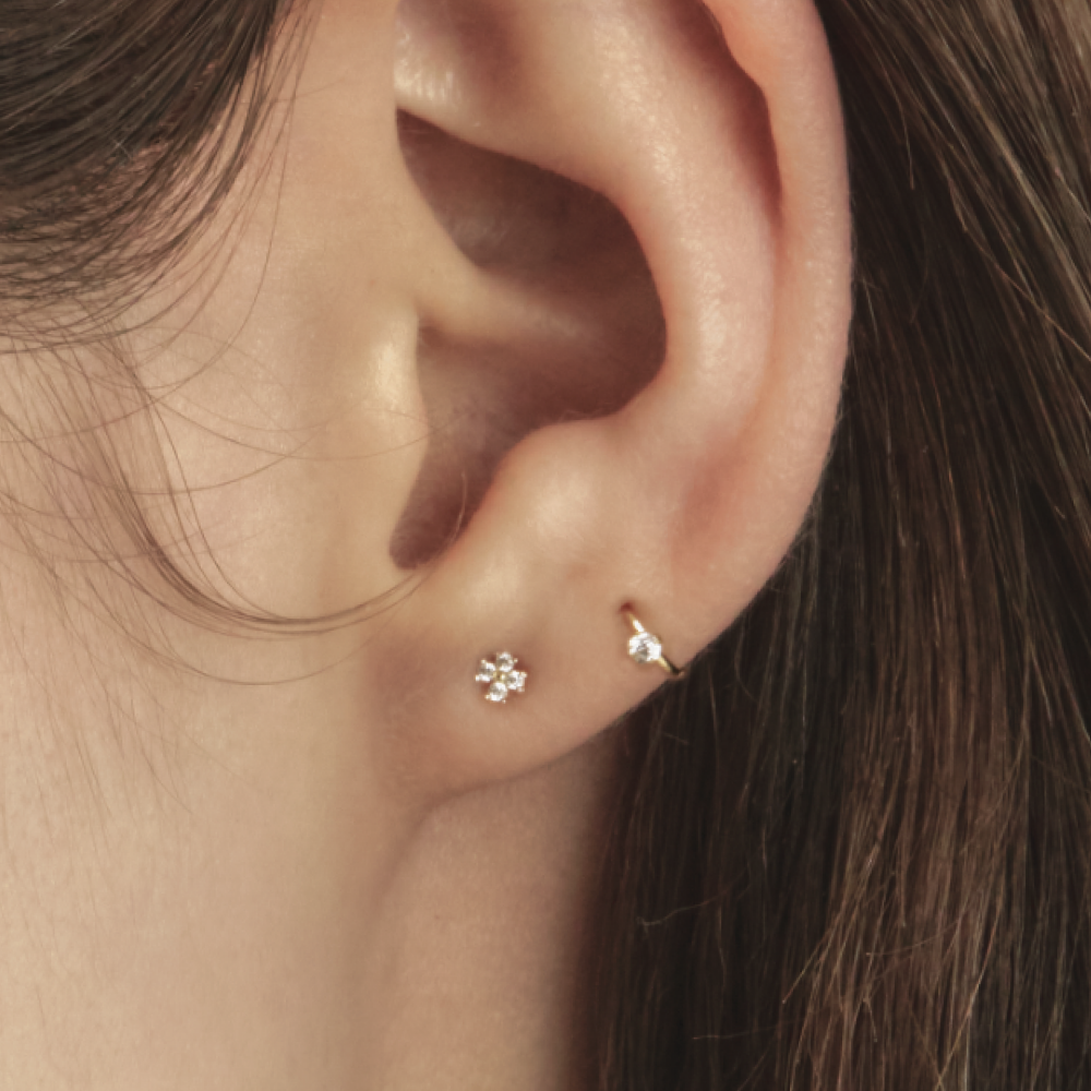 [누적판매7천🏆] 14k 작은 사각 클로버 큐빅 귀걸이 피어싱 (2type)