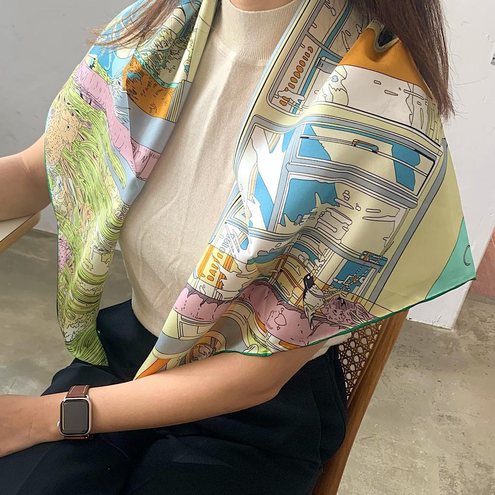 여성 사각 롱 실크스카프 까레 스카프