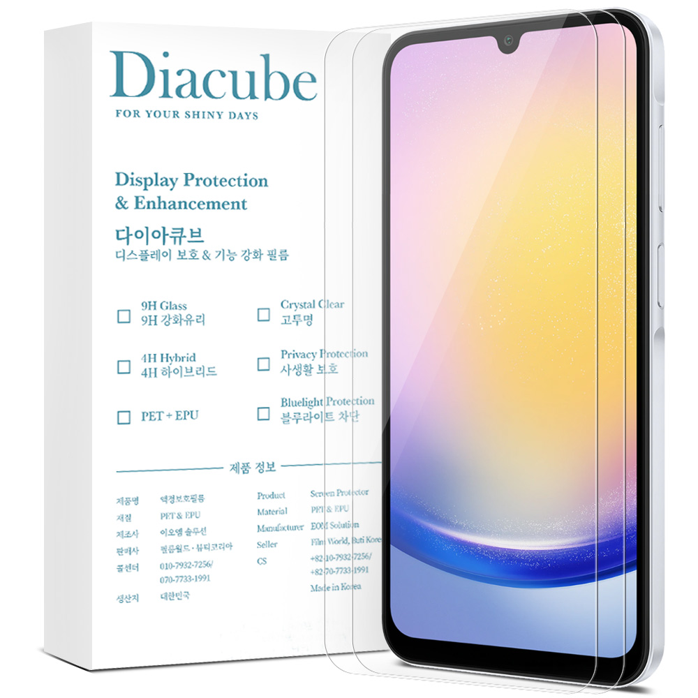 [🚀당일발송/국내생산] 다이아큐브 갤럭시 A25 풀커버 지문인식 슬림 강화유리 액정보호필름 2매 가이드핀 간편부착