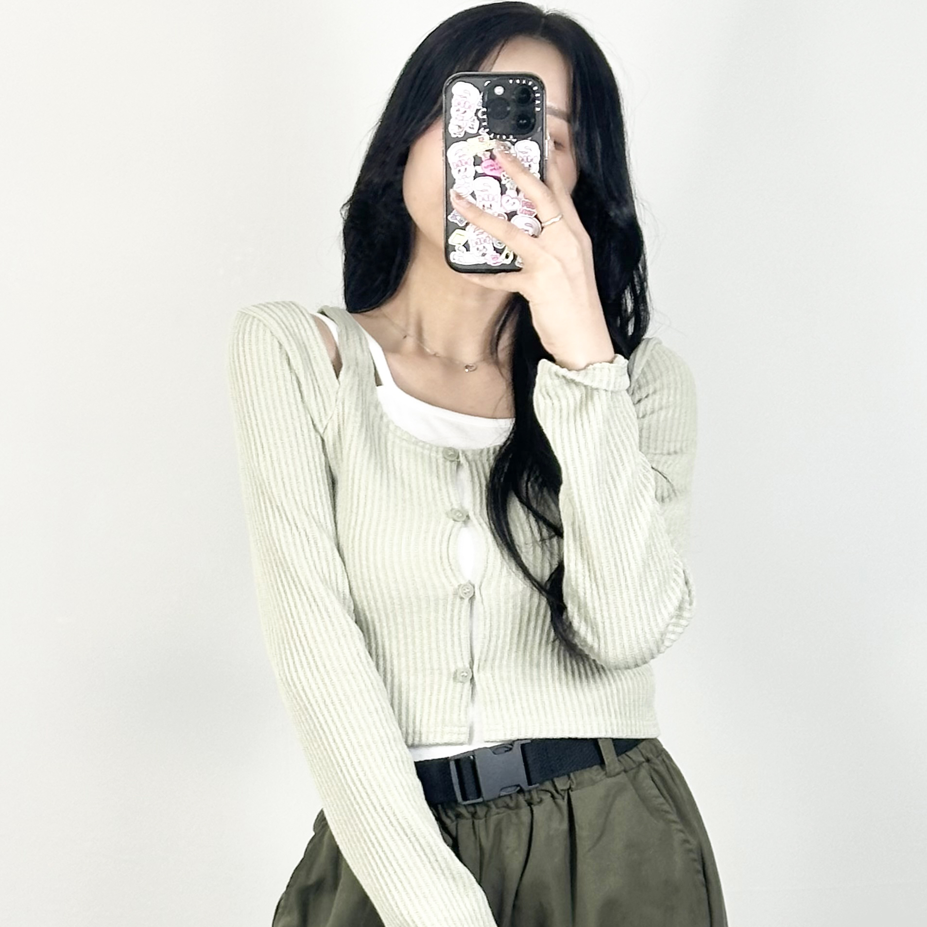 [무료배송❣][나시+가디건SET/3col] 파스텔 단추 어깨 트임 골지 슬림 크롭 CROP 가디건 언발 나시 세트 유니크 스트릿 힙한 HIP 트렌디 Y2K 레이어드 (3colors)