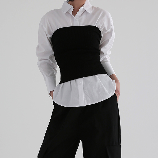 이스트 골지 레이어드 뷔스티에 니트 탑 3col