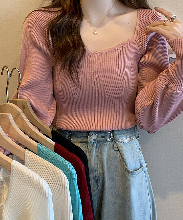 (도도한걸Z)스퀘어퍼프니트/여성니트/44~66프리사이즈/스퀘어넥니트/로멘틱/골지/결혼식/하객룩