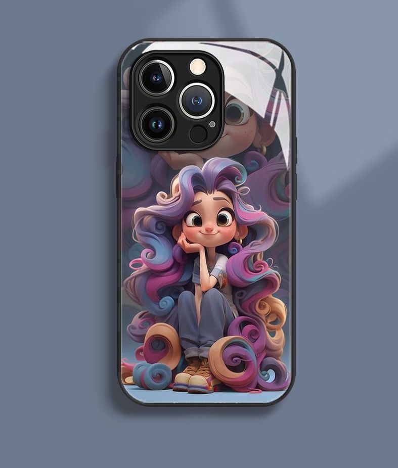 아이폰 14 프로 맥스 캐릭터 강화유리 케이스 귀여운 여자 그림