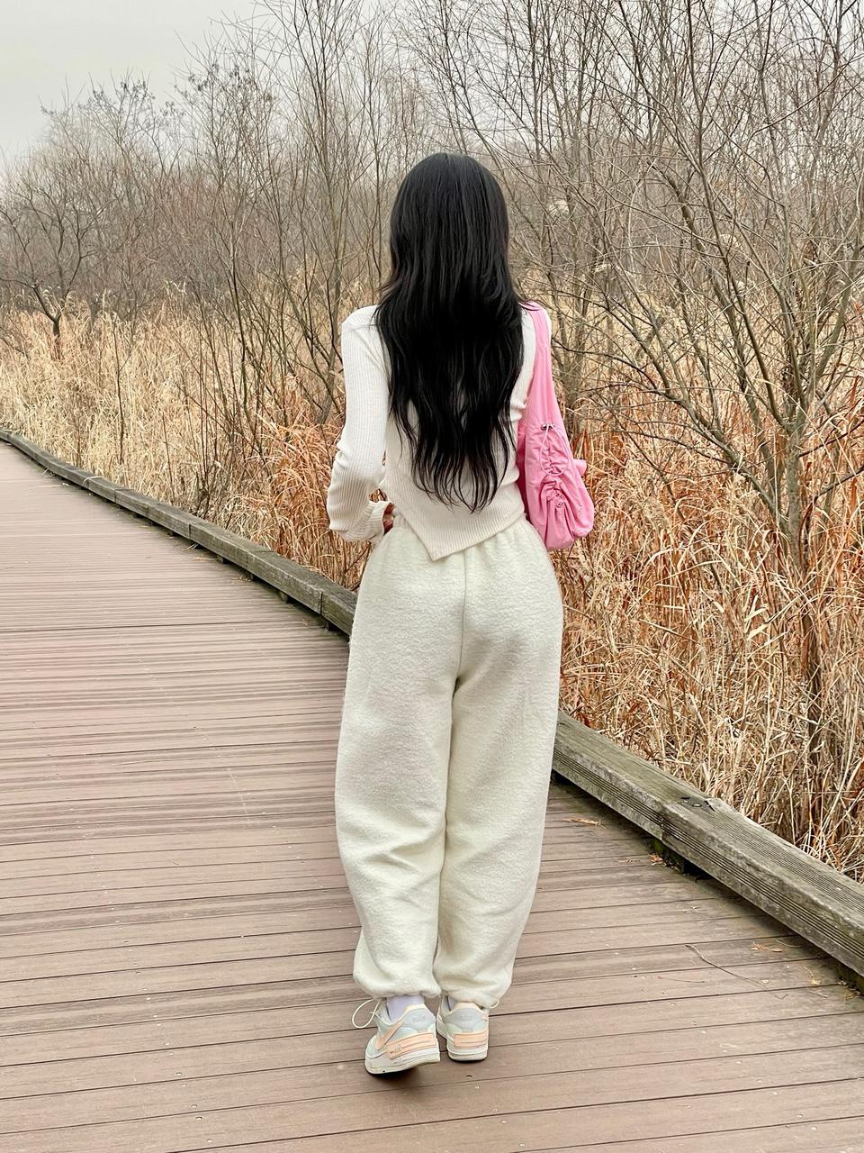 부클 뽀글이 와이드 스트링 기모 팬츠