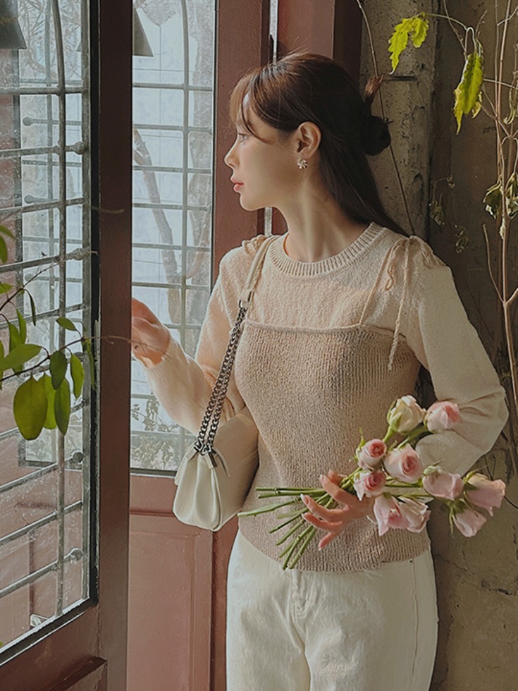 [44-120] 퓨티린 배색 뷔스티에 리본 니트 ( 봄-가을-겨울-데일리룩-데이트룩-캐주얼룩-캠퍼스룩-러블리룩-하객룩-격식룩-출근룩-빅사이즈-120사이즈-자체제작-몸매보정-신축성-통통녀 )
