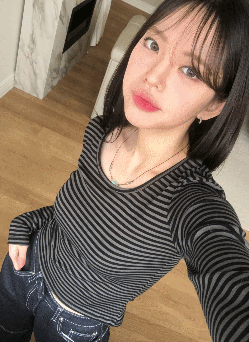 Fitbow T 핏보우 라운드 티 슬림 이너 스트라이프 유넥 스판