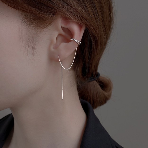 S925 샐러티 이어커프 롱 체인 드롭 귀걸이 JB1006