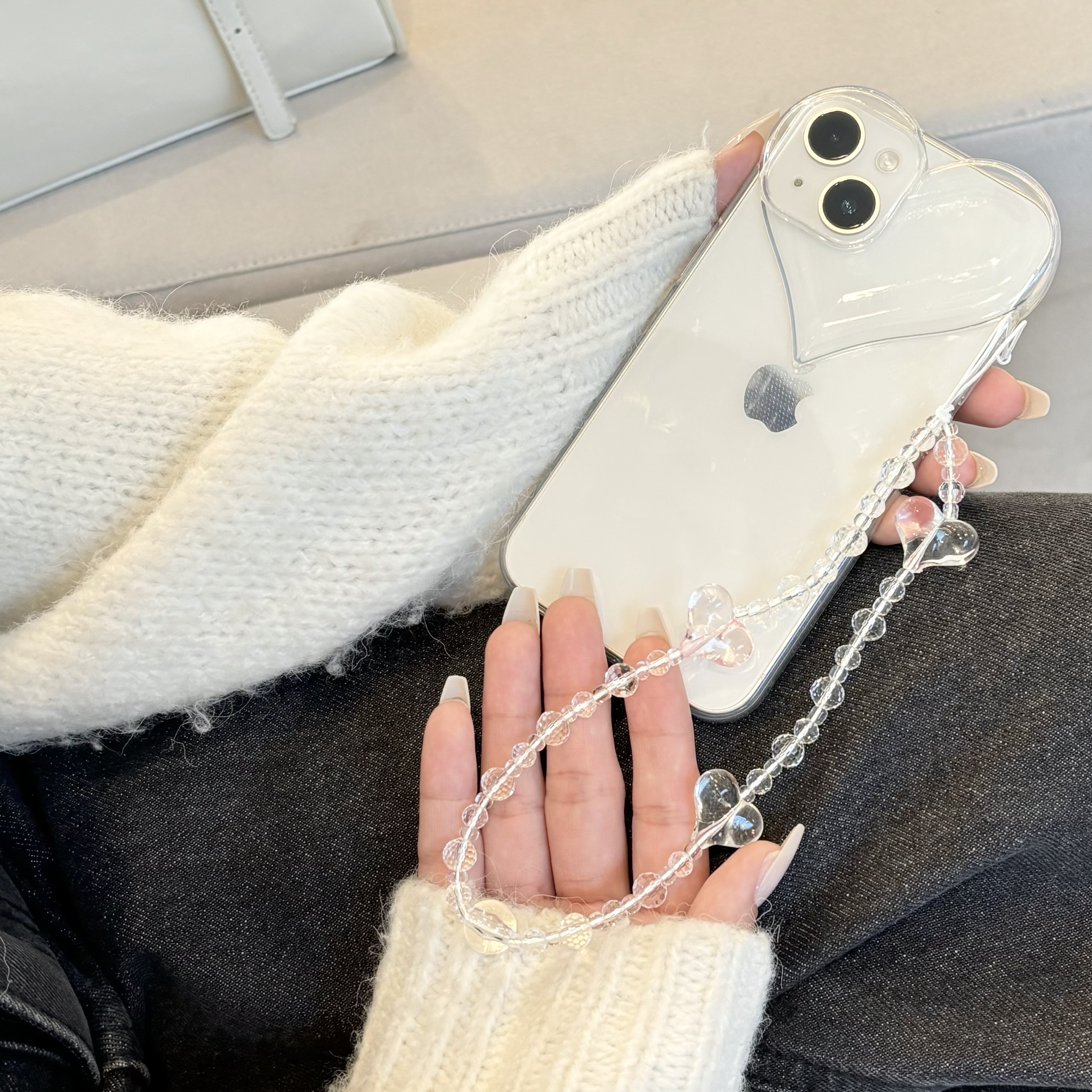 🤍 투명 핑크 포인트 하트 비즈 스트랩 아이폰 케이스 세트