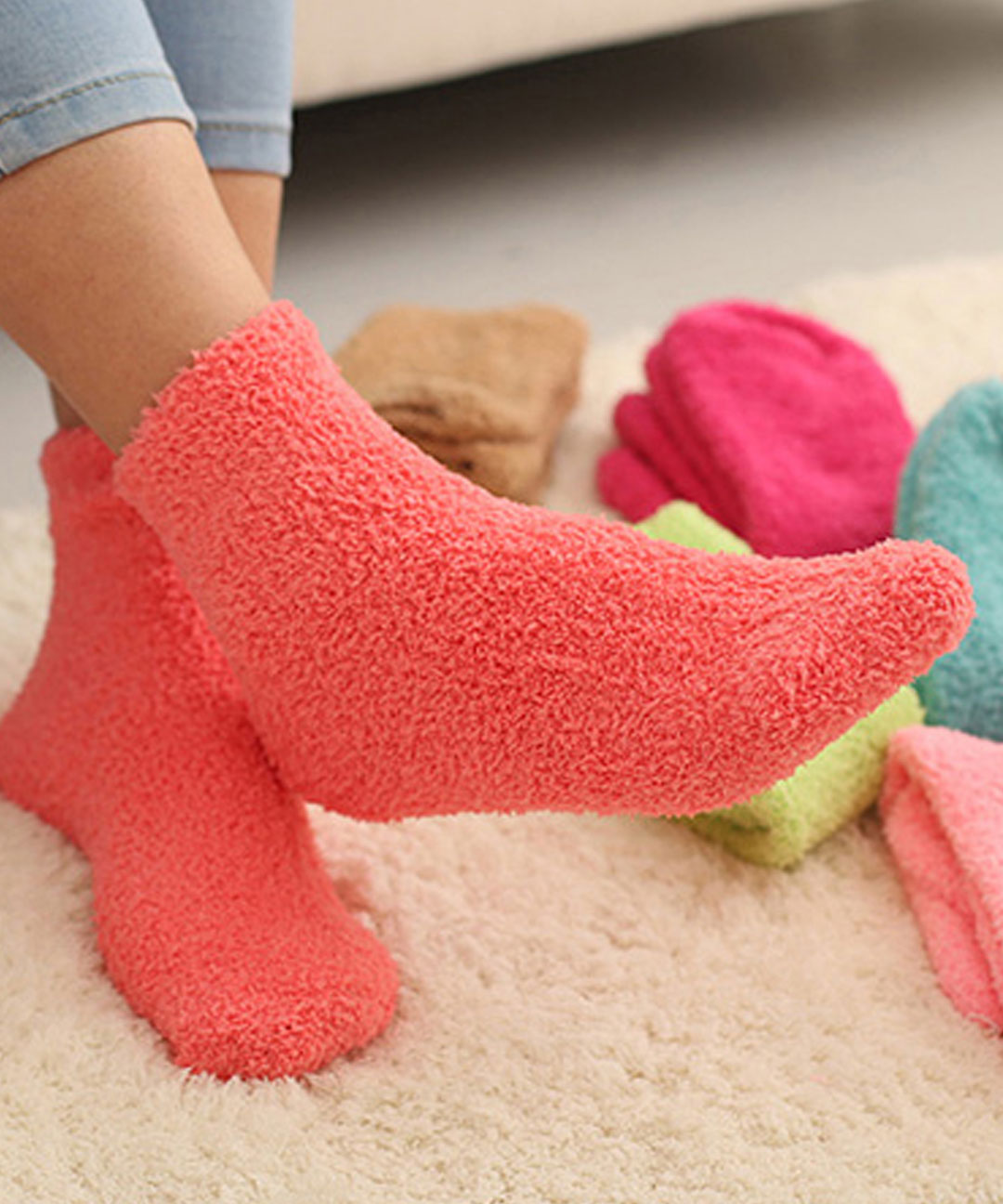 (LND) 파스텔 수면양말 5켤레(색상랜덤) 양말 방한 겨울 줄무늬 단색 숙면