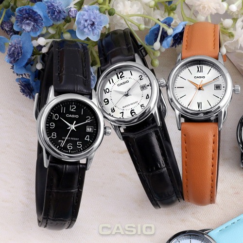 카시오 미니멀 라운드 쿼츠 아날로그 방수 캐쥬얼 여자 가죽손목시계 LTP-V002L-1B3