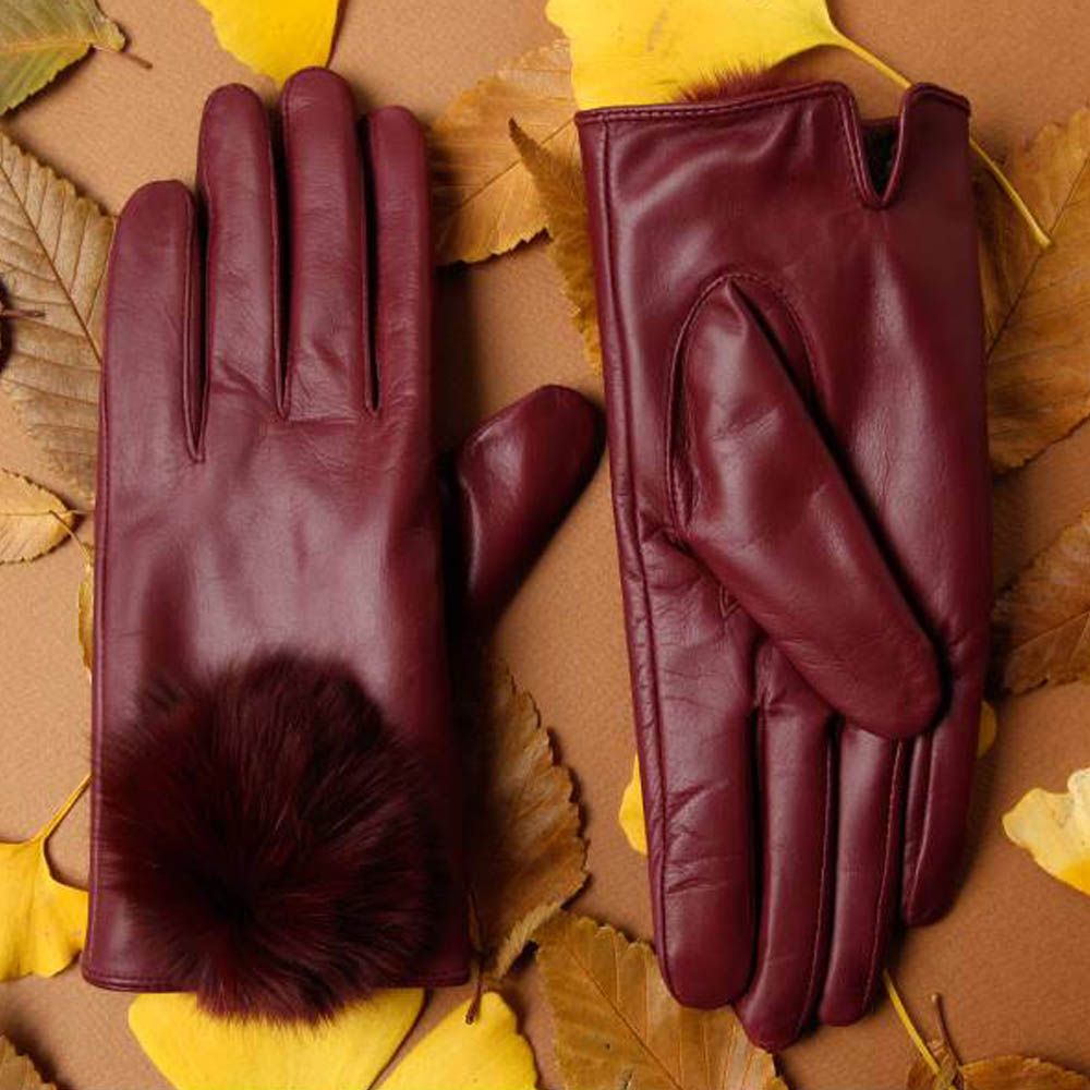 여우털 방울 달린 여성 가죽장갑 직장인 오피스룩 여성양가죽장갑 여성털장갑 컬러장갑 가죽장갑 여성용가죽장갑