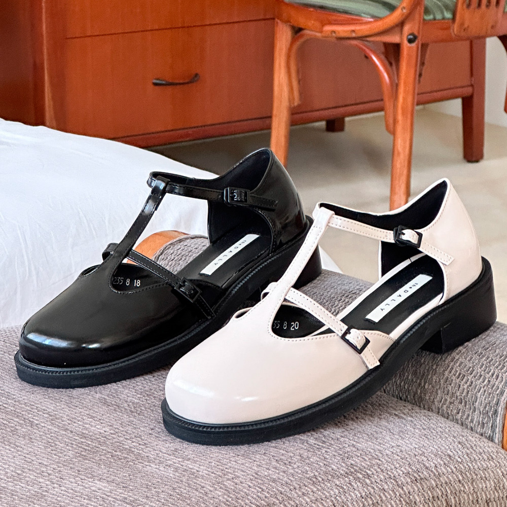 에스케 벨트 스트랩 플랫 슈즈 4cm