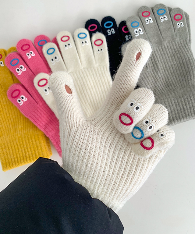 [무배] 얼굴 표정 프린팅 손가락 구멍 스마트폰 터치 장갑 5color