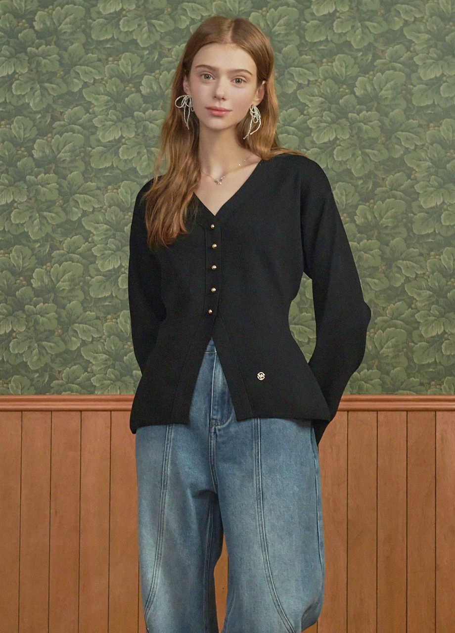 [44-120] Redolence V-neck Line Cardigan Black 레돌런스 브이넥 라인 가디건 블랙 (봄/데일리룩/오피스룩/캐주얼룩/데이트룩/하객룩/브이넥/긴팔/라인/빅사이즈/자체제작)
