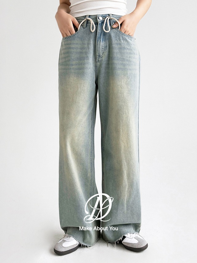 [1천장돌파][MADE] 빅사이즈 S-4XL 위브 스트링 셀프 컷팅 워싱 와이드 데님 팬츠 청바지
