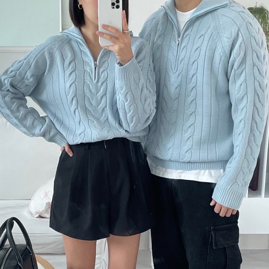 미우 반집업 케이블 니트 코디 제주도 데이트 신혼여행 커플 시밀러룩