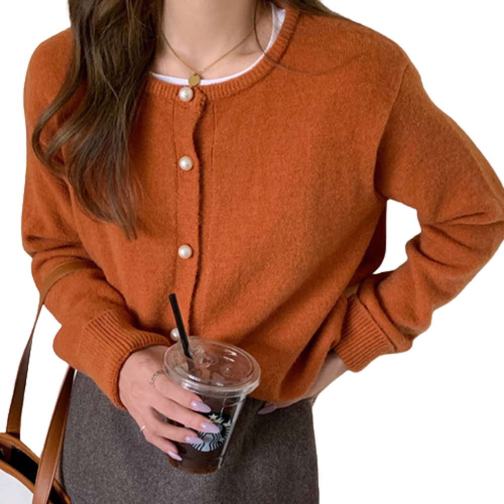 가을 겨울 니트 짧은 숏 가디건 중년 여성 라운드 하객 코디