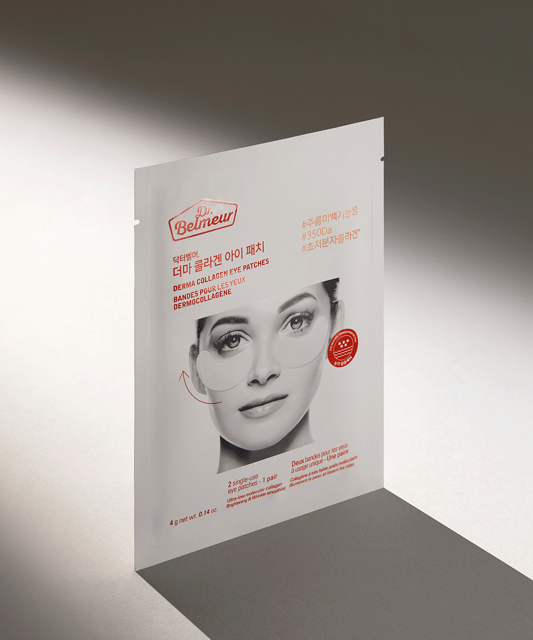 제품 주요 사양평균 350 Da 이하의 초저분자 콜라겐과 7종 비타민 콤플렉스를 함유, 투명해지며 유효성분이 흡수되는 하이드로겔 원단의 주름개선, 미백 이중 기능성 아이 패치