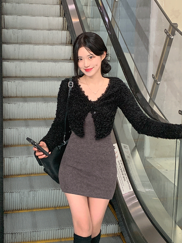 버블 크롭 라운딩 퍼 가디건 (4color)