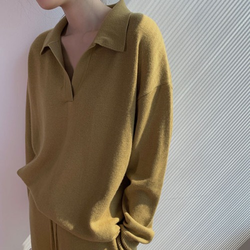 베이직 심플 데일맄 카라넥 루즈핏 니트 상하세트 B-2478#